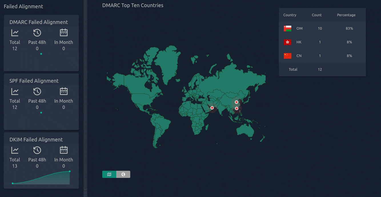Get advanced analysis and comprehensive statistics of DMARC aggregate data.